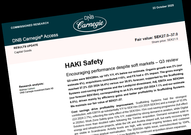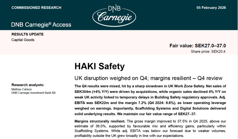DNB Carnegie gör betalda analyser på uppdrag av HAKI Safety.